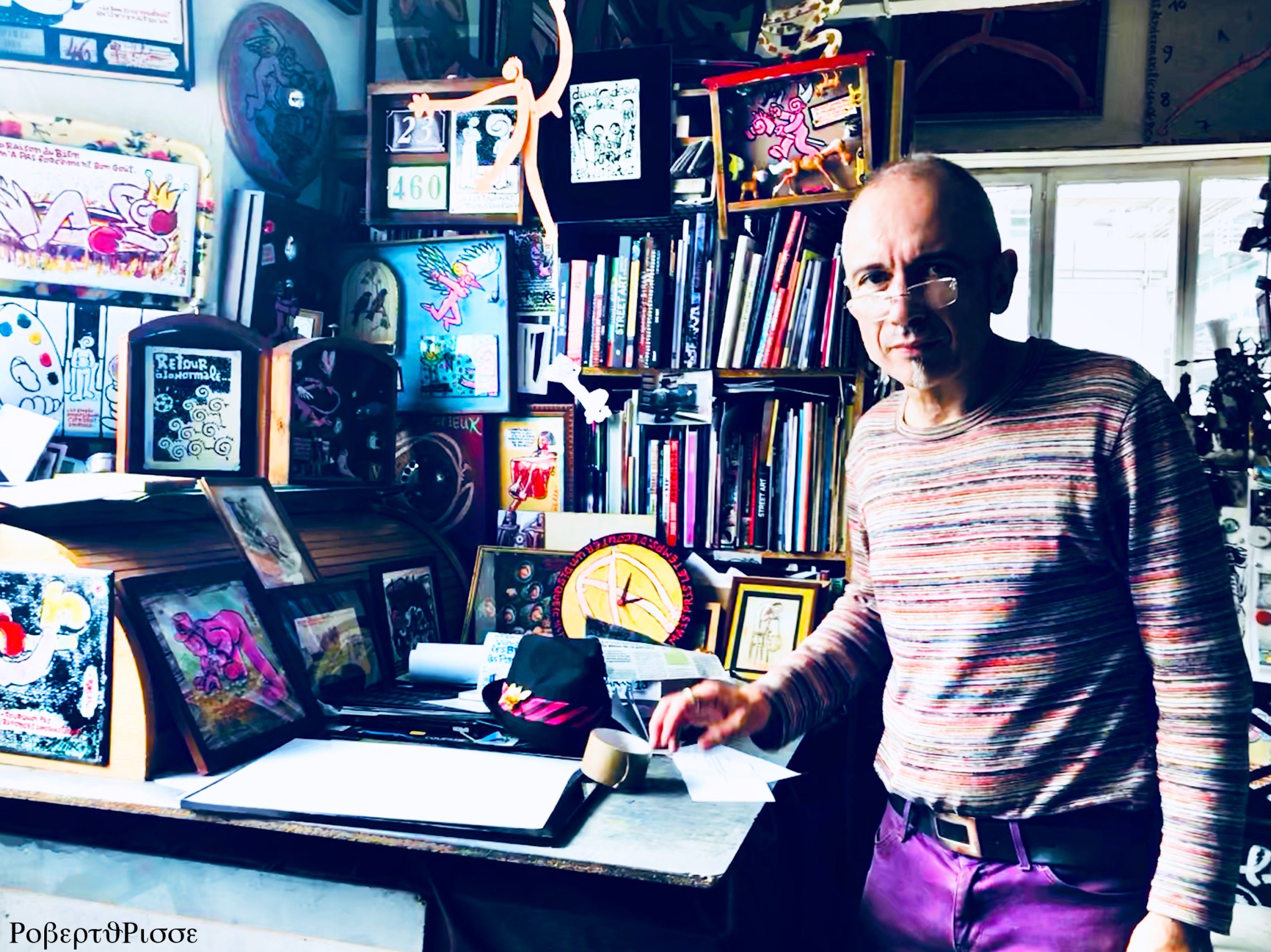 Paëlla Chimicos took his pseudonym ( anagram of his name and surname) in 1985 , when he joined the collective of artists from Frigos